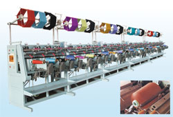 ■ 型式:單面單錠自控,4錠為一節。 ■ 錠距:300毫米 ■ 錠 數:8錠/臺,12錠/臺,16錠/臺, 20錠/臺,24錠/臺 ■ 錠速:每錠一臺0.18kw電機和一臺變頻器控制, 可遞增、遞減速、無級變速。錠速1600轉/分, ■ 筒管形式:直形,錐形 ■ 筒子容量:250克,500克,750克,1000克, 2000克,可在一錠上任意調節。 ■ 筒子成形:應用仿形板的模式,可卷繞不同角 度收邊量要求的直、錐形筒。 ■ 電機功率:0.18kw/錠 ■ 導絲動程:120-200毫米、可變收邊量 ■ 機臺外形尺寸:7980×930×1888毫米 (長×寬×高)/24錠
